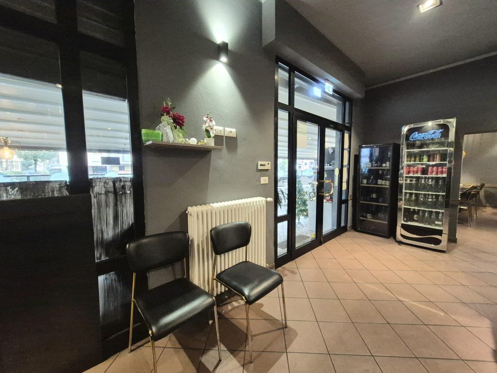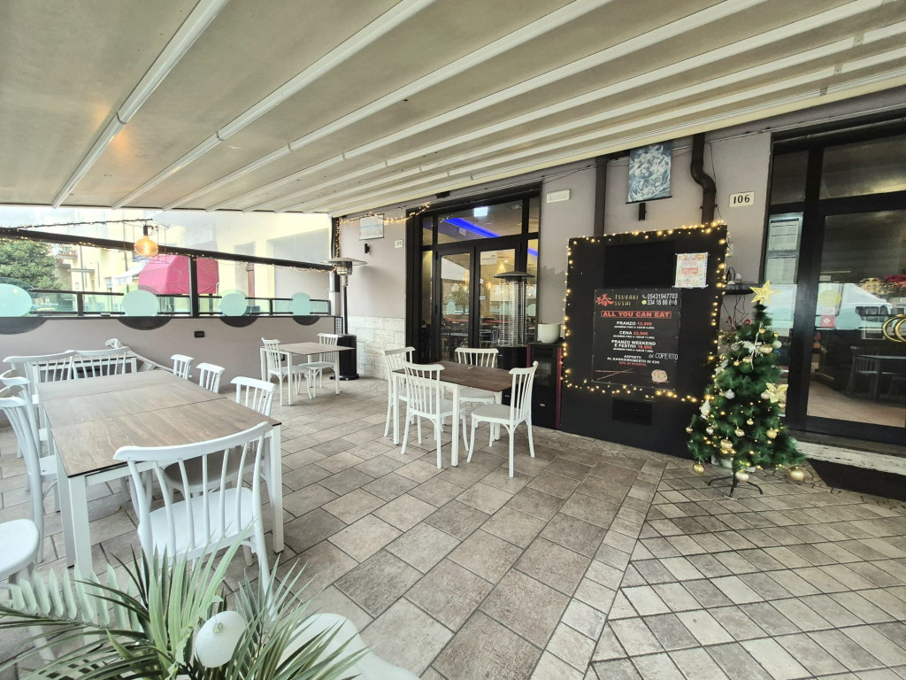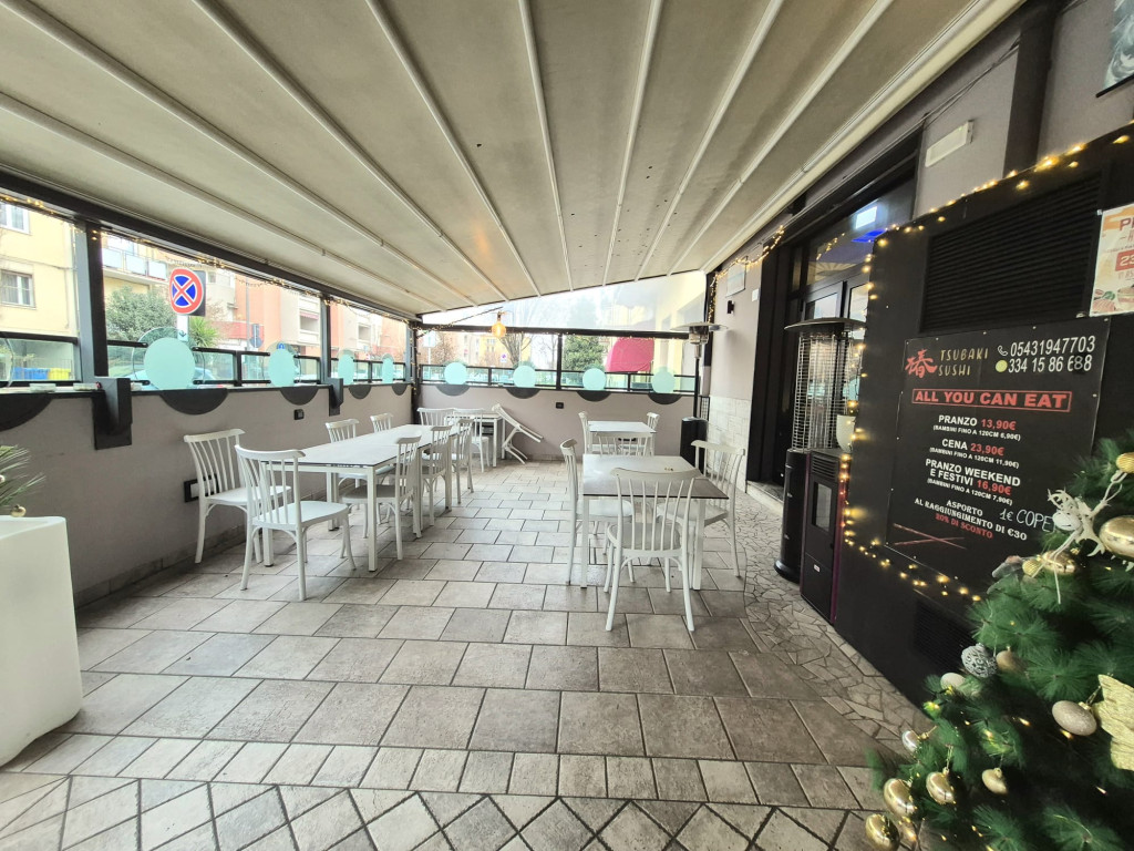 Ristorante in zona residenziale composto da due ampie sale , cucina, servizio per il personale, doppi servizi per i clienti con accesso anche con carrozzina, resede esterna recintata e coperta da tenda apribile elettricamente, spogliatoi, magazzino e laboratorio. Canna fumaria, climatizzato, allarmato. Ottime.condizioni.