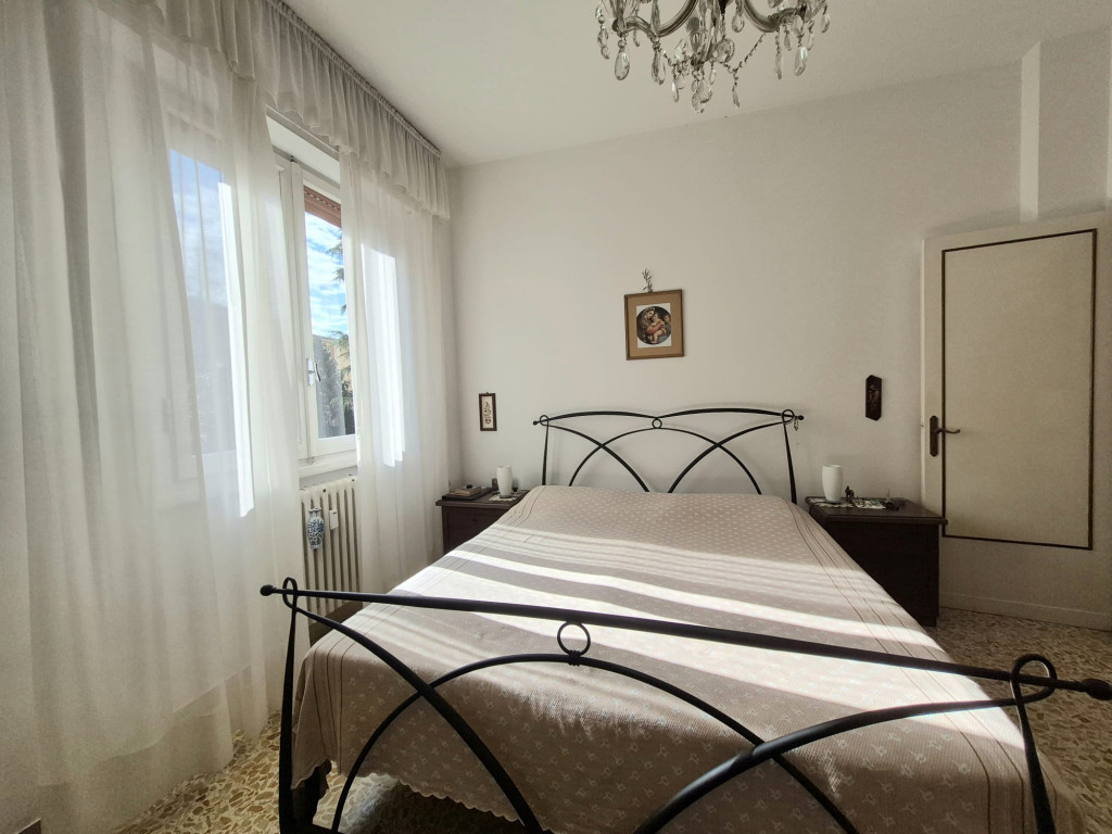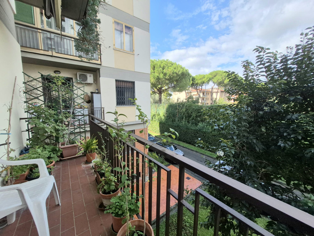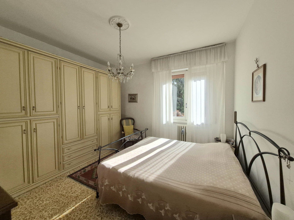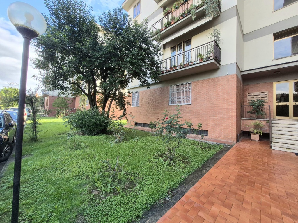 In strada privata con accesso limitato da sbarra elettrica, troviamo questo appartamento in piccola palazzina immersa dai giardini e vialetti condominiali. L'immobile posto al primo piano con ascensore sviluppa una superficie commerciale di circa 120 mq e si compone da un ingresso su corridoio che disimpegna tutte le stanze, quali una spaziosa cucina abitabile dotata di balcone, ampio e luminoso salotto anch'esso dotato di balcone, tre camere matrimoniali, servizio finestrato e ripostiglio (nel quale è possibile ricavare un secondo servizio). Completa la proprietà una cantina e un posto auto in garage coperto oltre ai posti auto esterni all'interno dei vialetti privati.