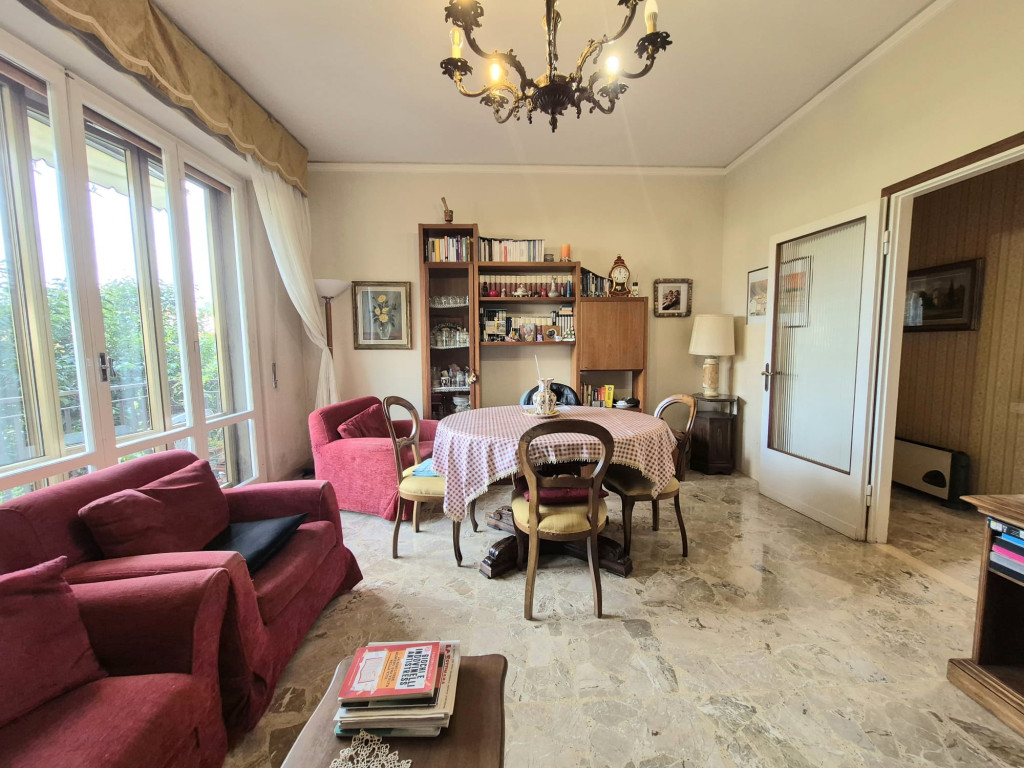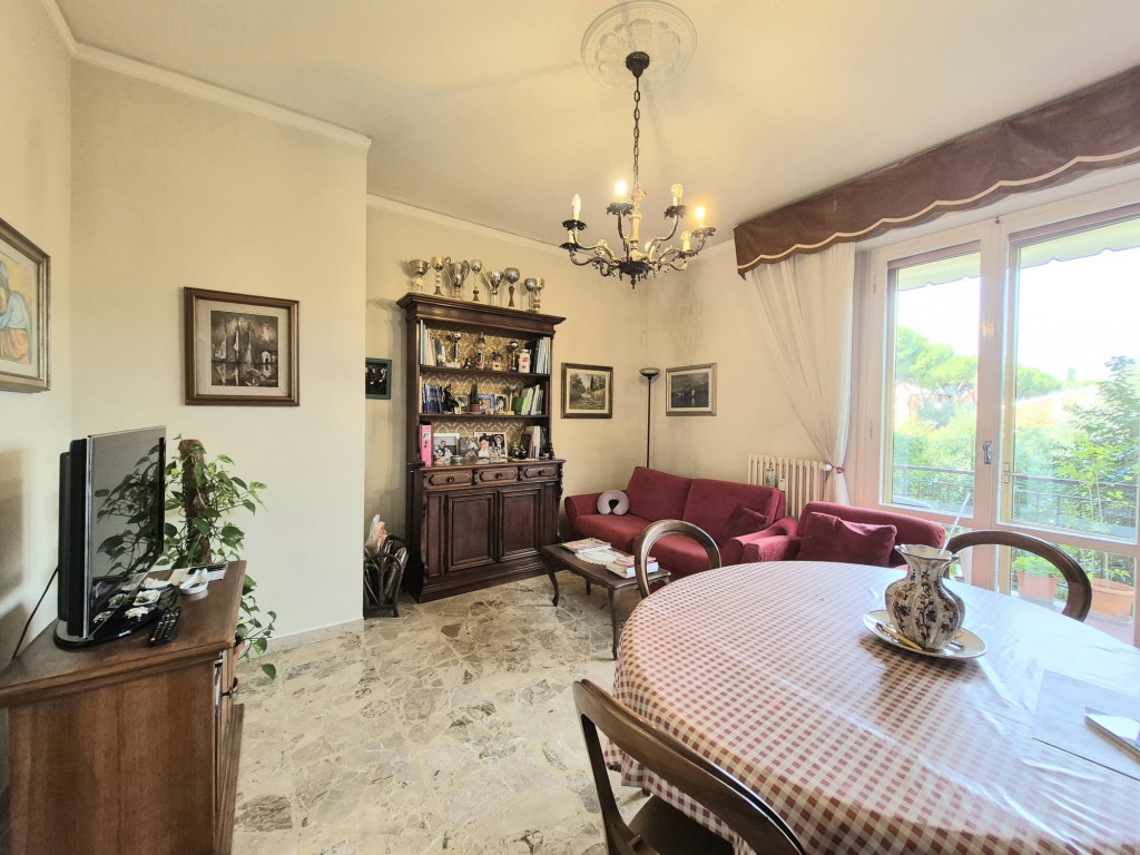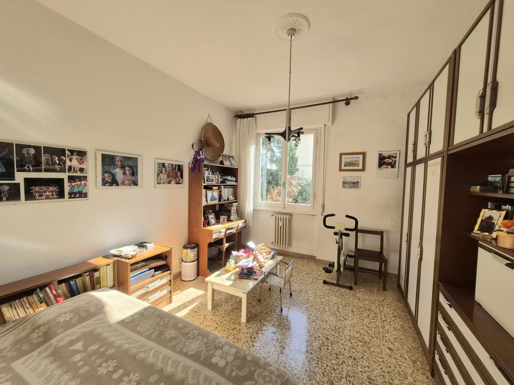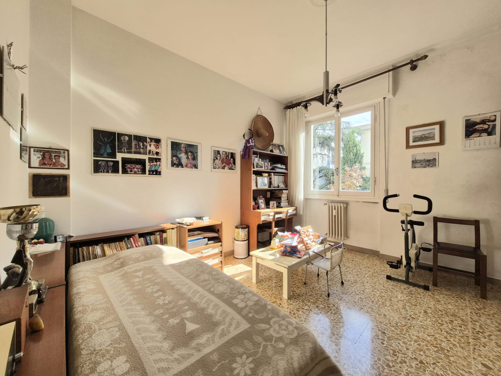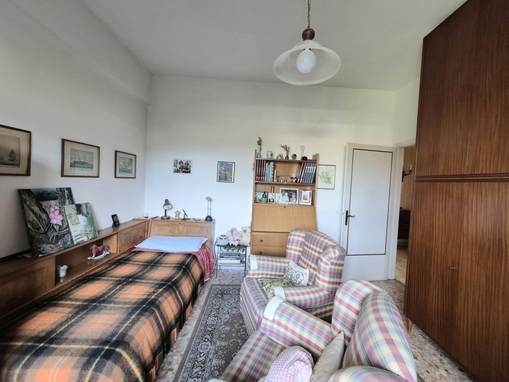 In strada privata con accesso limitato da sbarra elettrica, troviamo questo appartamento in piccola palazzina immersa dai giardini e vialetti condominiali. L'immobile posto al primo piano con ascensore sviluppa una superficie commerciale di circa 120 mq e si compone da un ingresso su corridoio che disimpegna tutte le stanze, quali una spaziosa cucina abitabile dotata di balcone, ampio e luminoso salotto anch'esso dotato di balcone, tre camere matrimoniali, servizio finestrato e ripostiglio (nel quale è possibile ricavare un secondo servizio). Completa la proprietà una cantina e un posto auto in garage coperto oltre ai posti auto esterni all'interno dei vialetti privati.