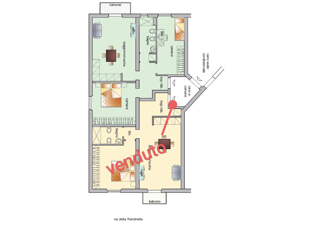 Trilocale con balcone completamente ristrutturato