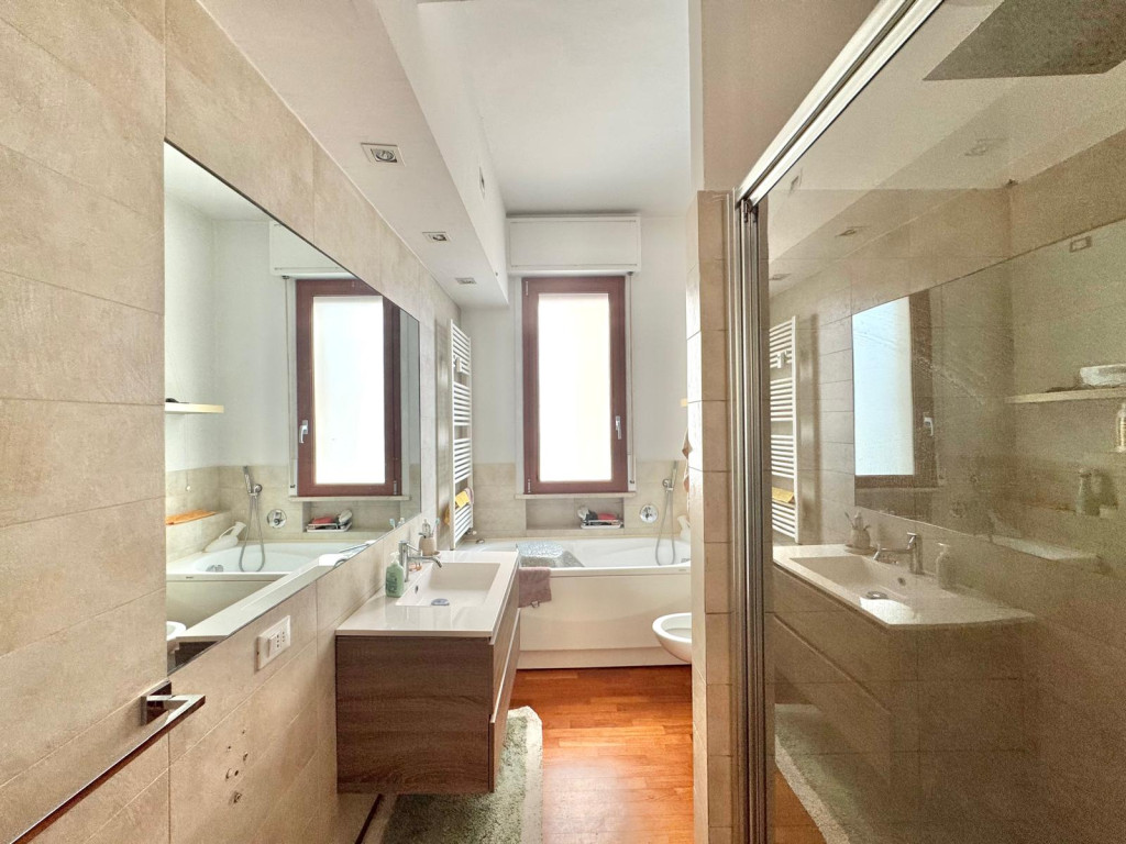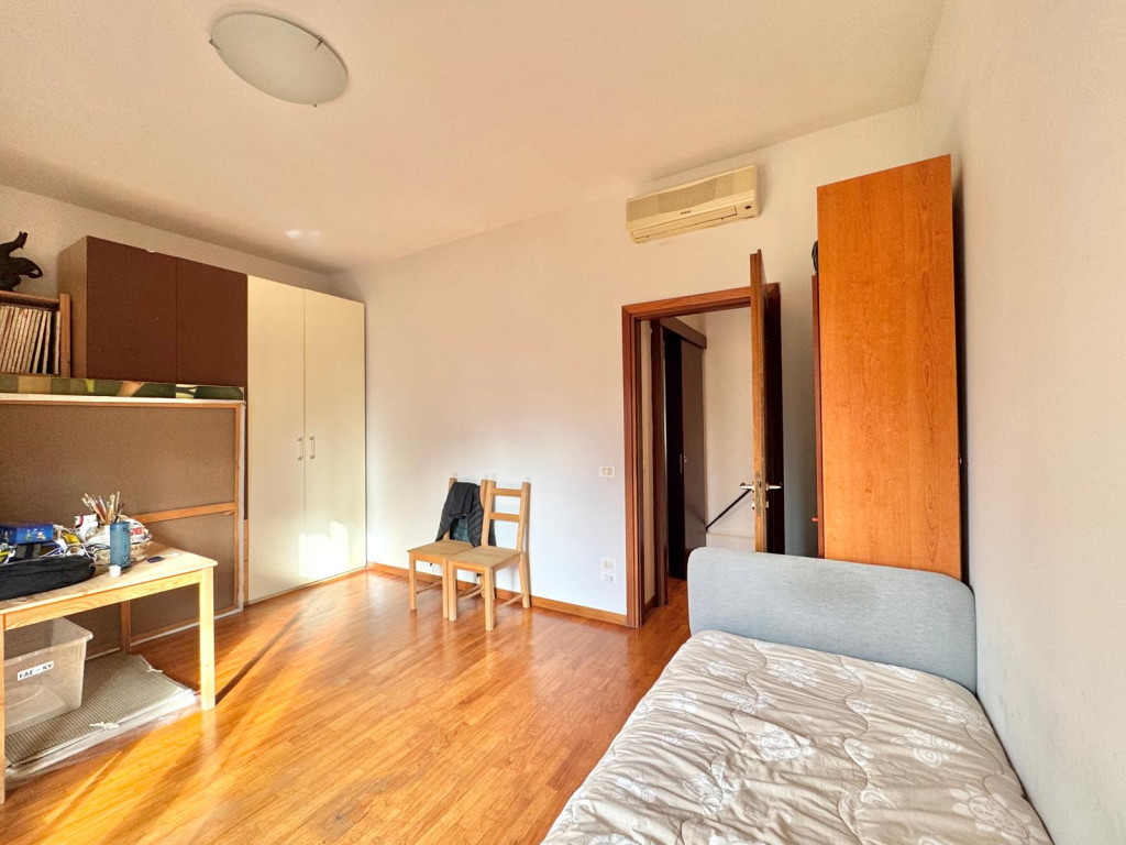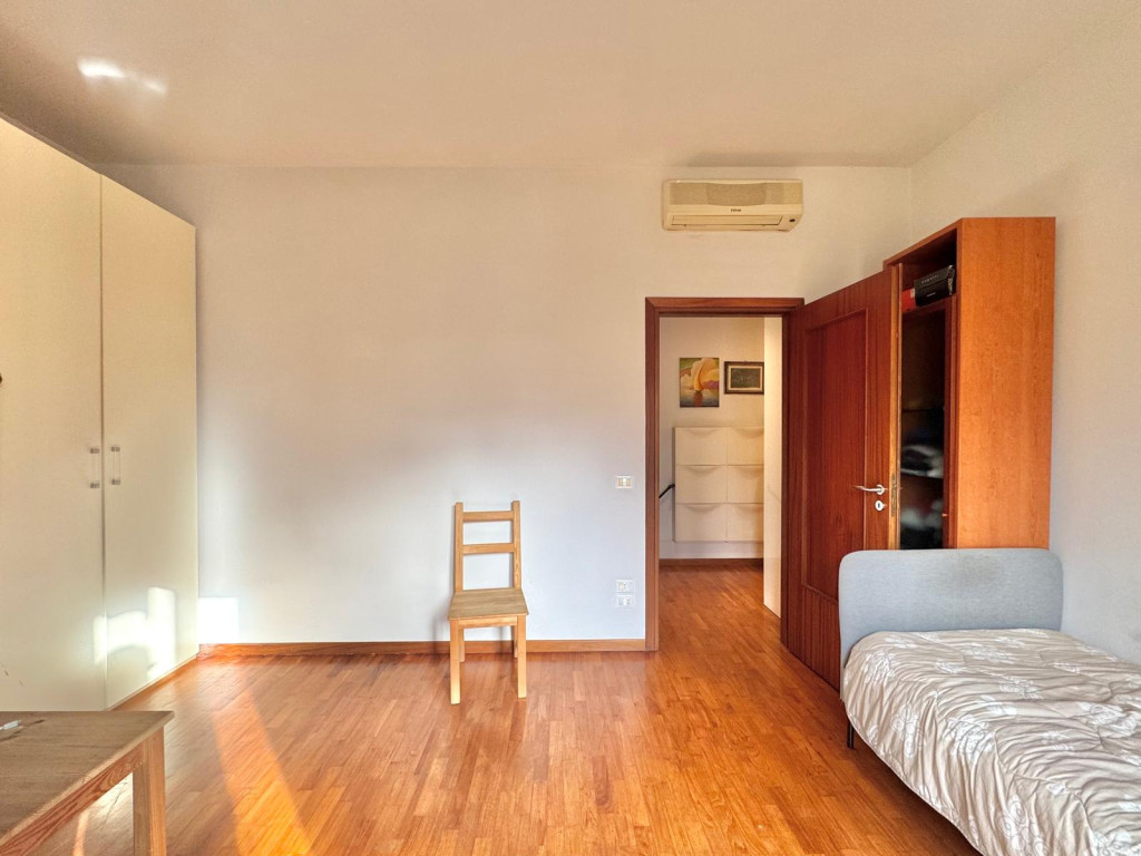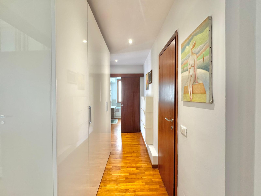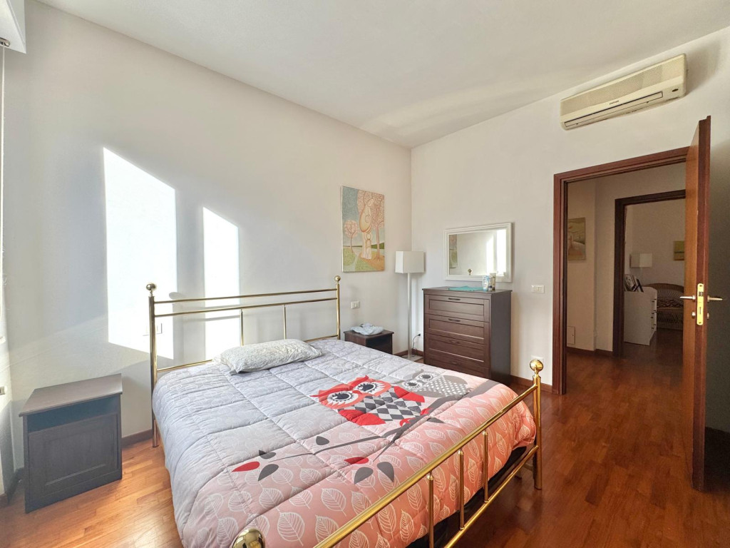 L’appartamento affaccia su un giardino, garantendo tranquillità, privacy e una vista aperta che permette di godere di splendidi tramonti.