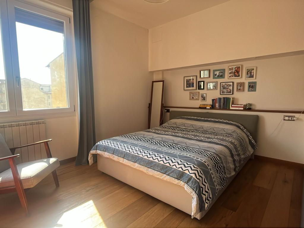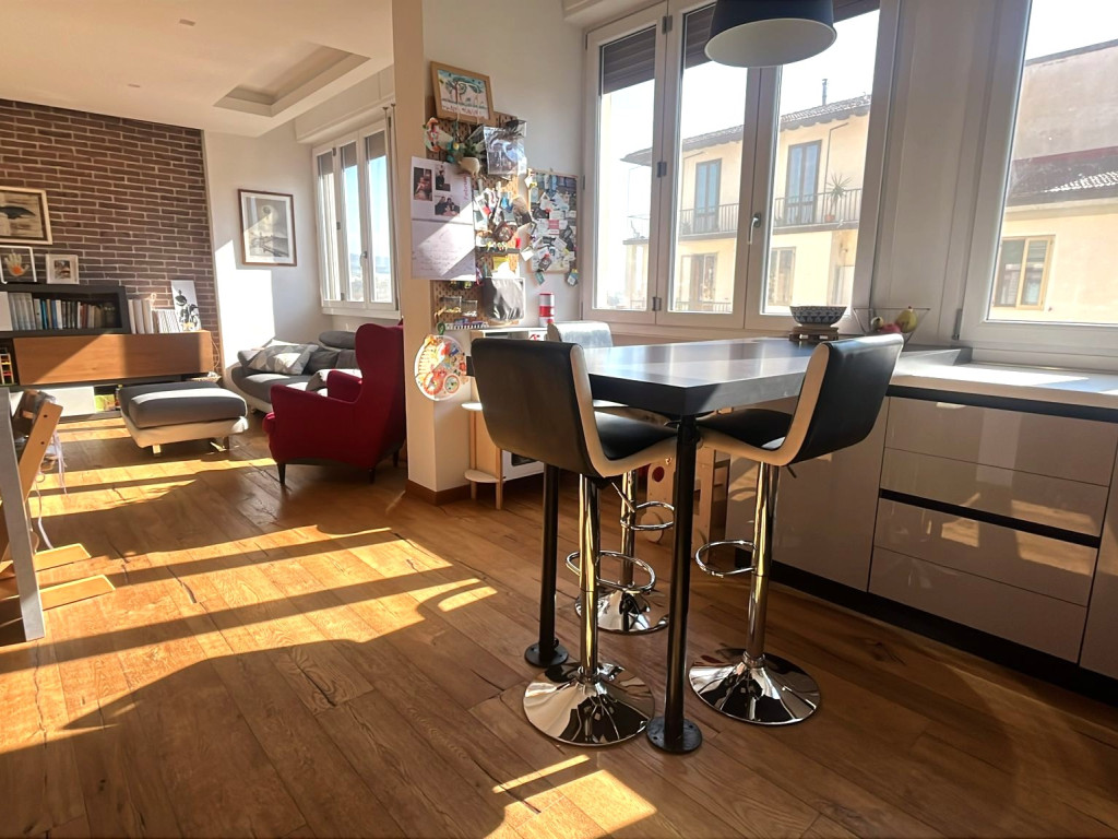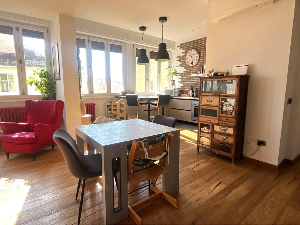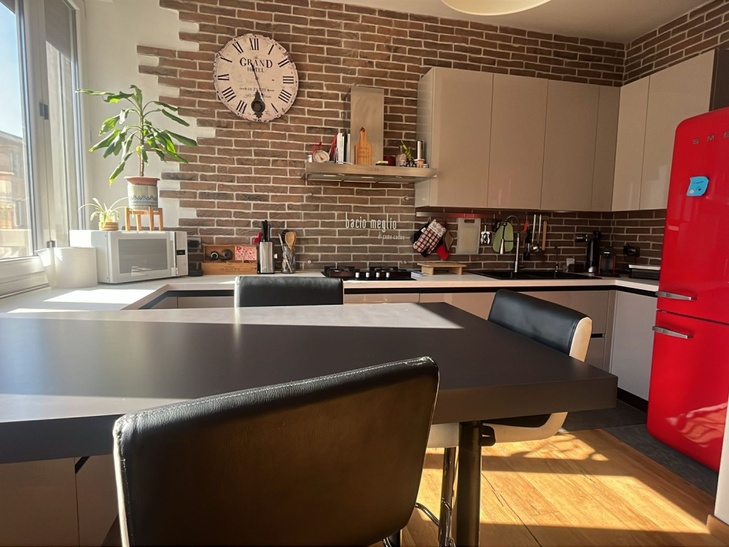 Luminosissimo appartamento al quinto piano con ascensore completamente ristrutturato di recente e composto da arioso ingresso su fantastico openspace con cucinotto e ripostiglio, disimpegno notte, due camere matrimoniali e servizio finestrato con comodo balcone.