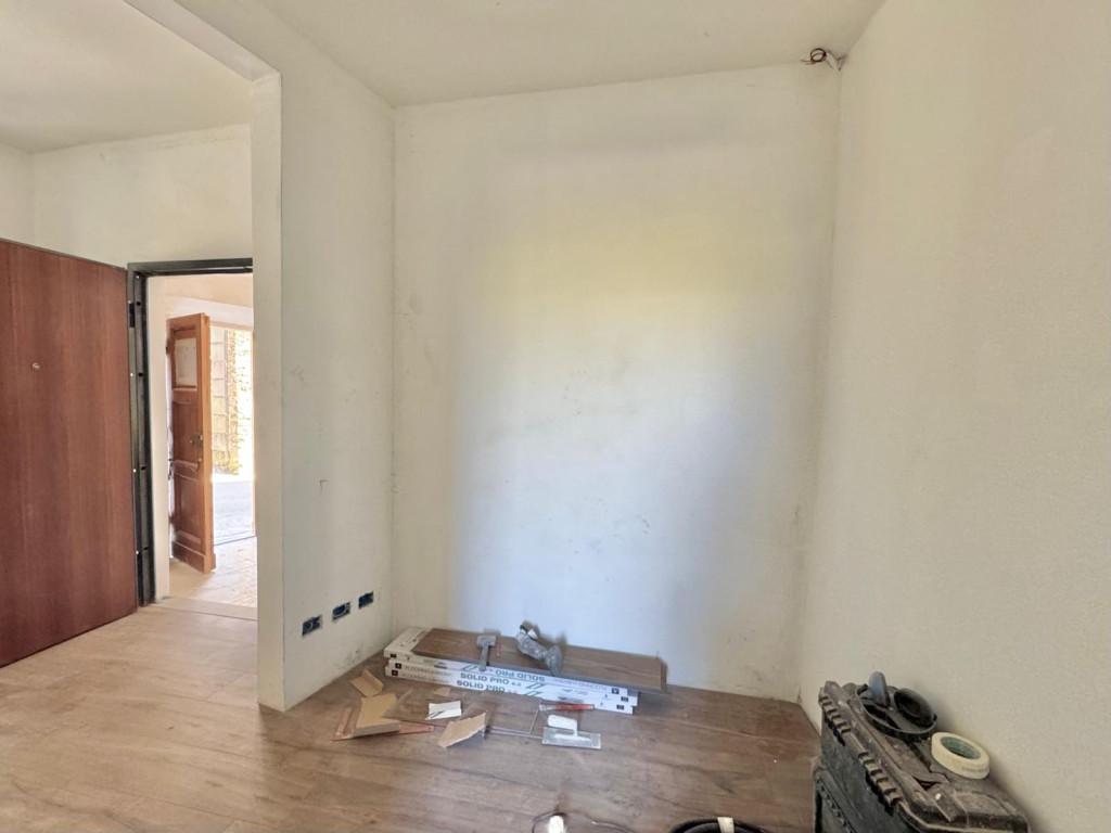 L’immobile si apre su una luminosa zona giorno con pratico cucinotto, prosegue con una spaziosa camera matrimoniale e un servizio finestrato.