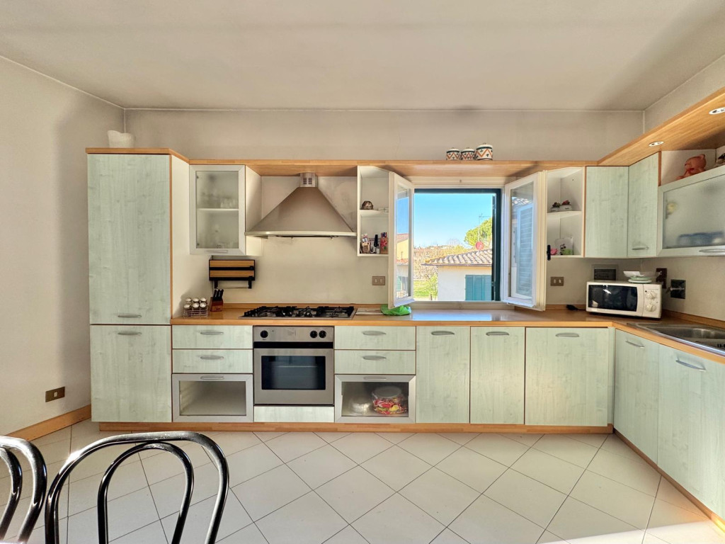 L’immobile si trova al secondo ed ultimo piano di una piccola palazzina senza ascensore (32 scalini). L’ingresso introduce a una distribuzione funzionale degli spazi, con una cucina abitabile e un ampio soggiorno, reso particolarmente luminoso dalle due finestre con gradevoli affacci sul verde.
