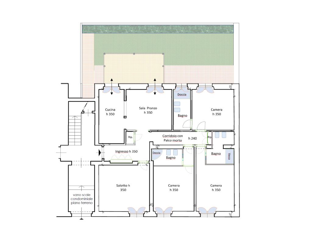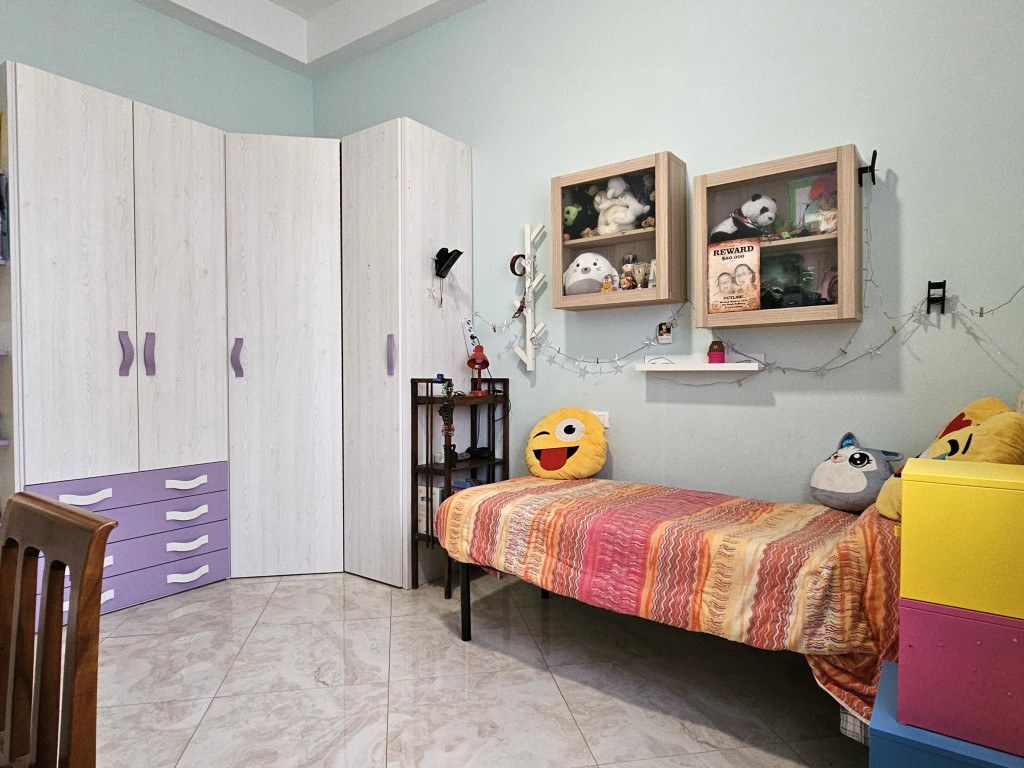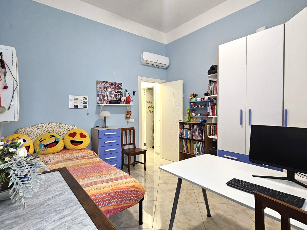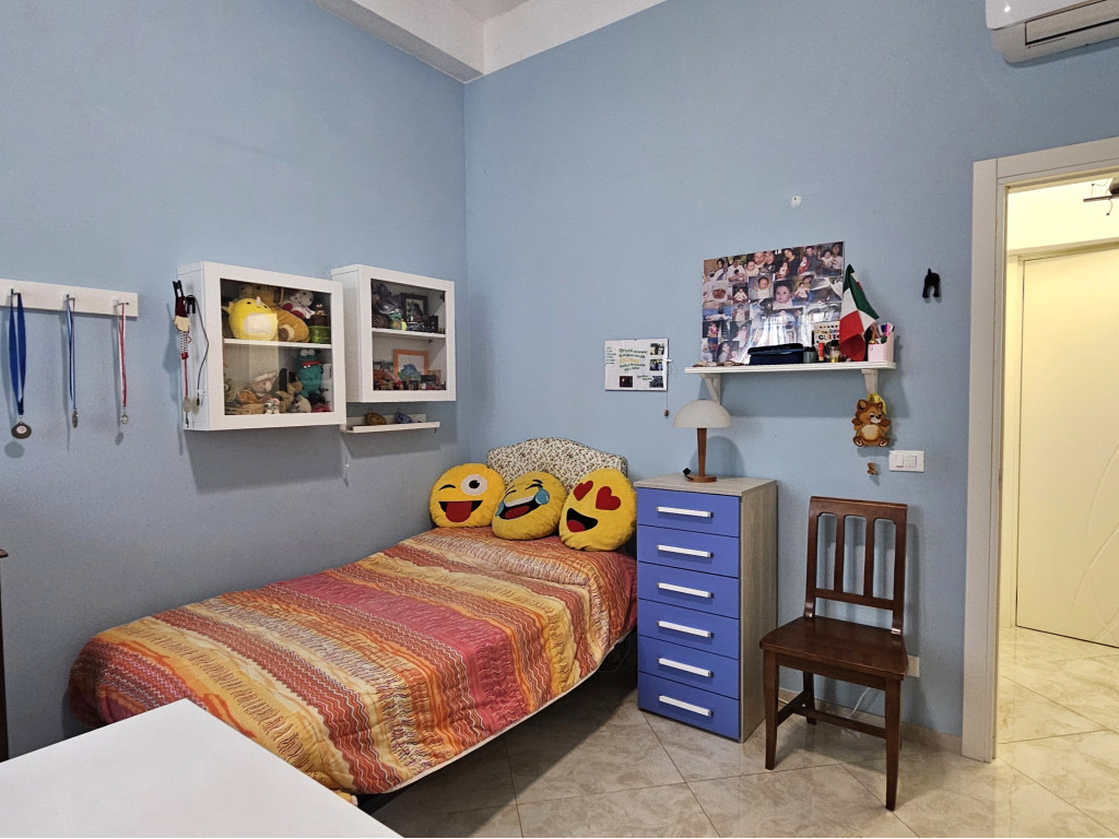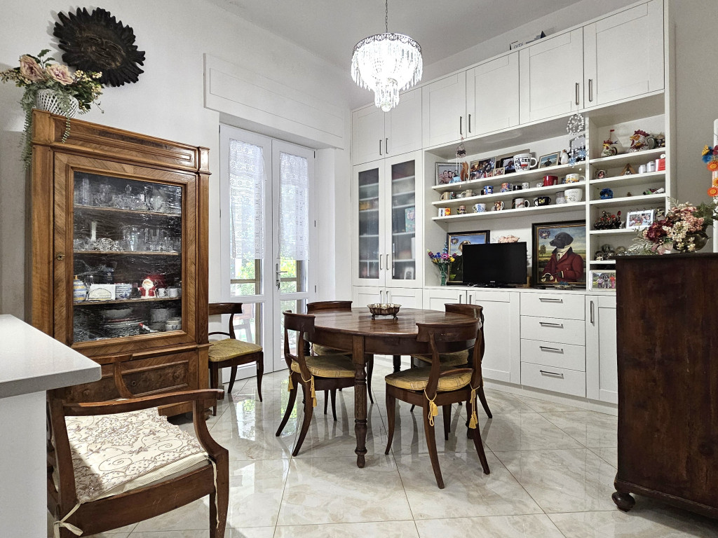 Situato al piano rialzato, l’immobile si distingue per spazi ampi e ben distribuiti: ingresso accogliente, luminoso soggiorno, cucina abitabile con sala da pranzo, tre camere matrimoniali – di cui due dotate di bagno privato – oltre a un ulteriore servizio e pratici ripostigli e soppalchi.