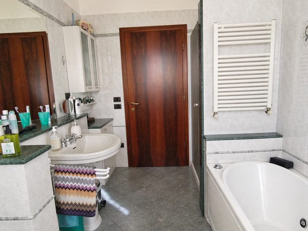 La zona notte, ben separata, si sviluppa lungo un corridoio dotato di armadi a muro e comprende tre camere matrimoniali, tutte ampie e luminose, di cui una con terrazzo privato. Completano il piano due bagni di generose dimensioni, uno dei quali impreziosito da vasca idromassaggio.