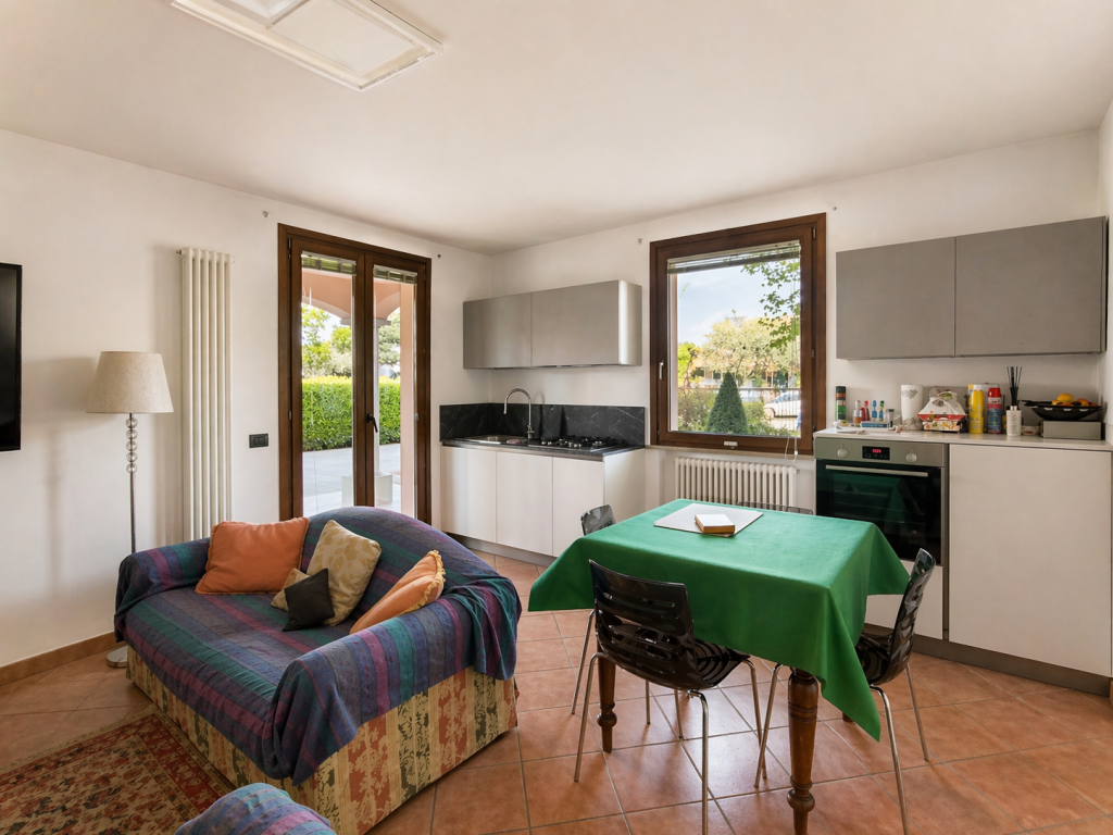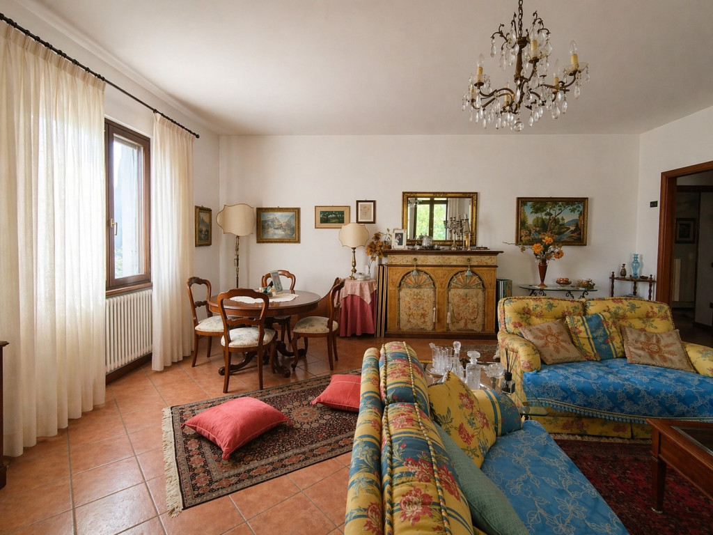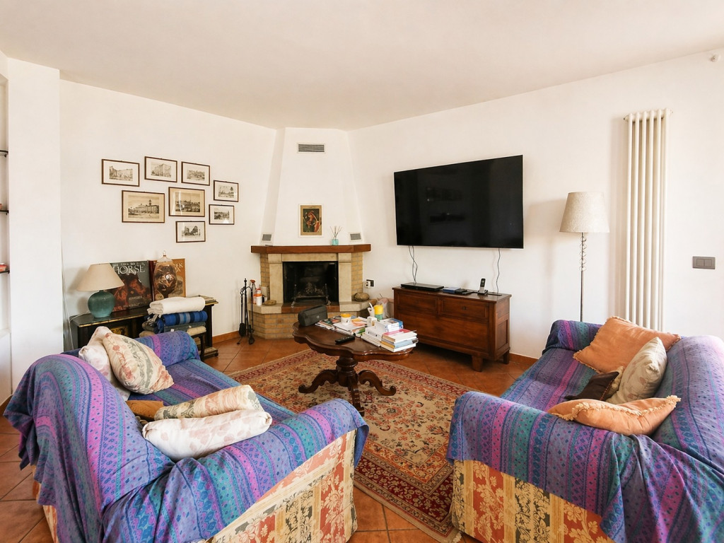 Al piano terra, preceduto da un ampio porticato, si sviluppa una vera e propria unità abitativa indipendente, caratterizzata da ambienti generosi, luminosi e perfettamente fruibili. L’ingresso conduce a una grande zona giorno con camino e cucina, impreziosita dalla portafinestra con accesso diretto all’esterno.