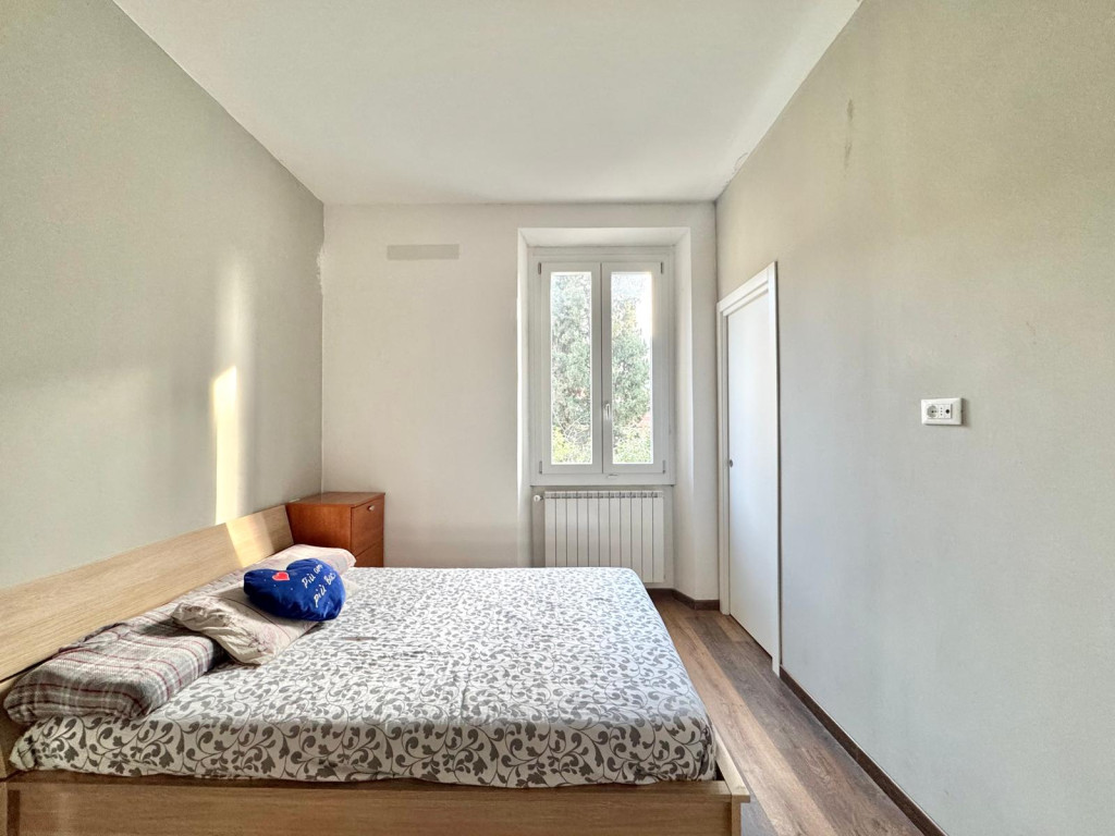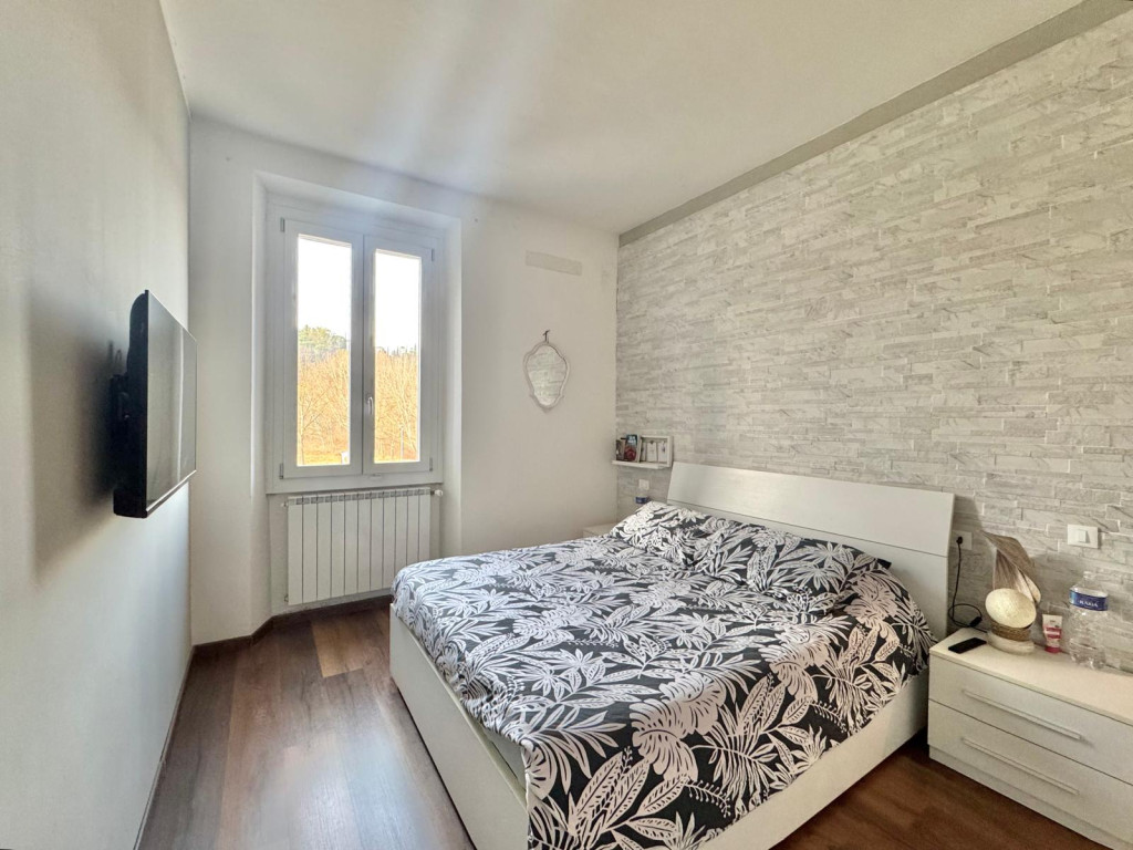 L'immobile si sviluppa su due livelli: al piano terra troviamo l'ingresso tramite corte di proprietà, soggiorno con camino, cucina abitabile, ripostiglio sotto scala e servizio; tramite scala interna si raggiunge il primo piano che è composto da due camere matrimoniali accessoriate da cabina armadio, camera singola con accesso a balcone e servizio finestrato. Completano la proprietà resede tergale, garage e due posti auto.