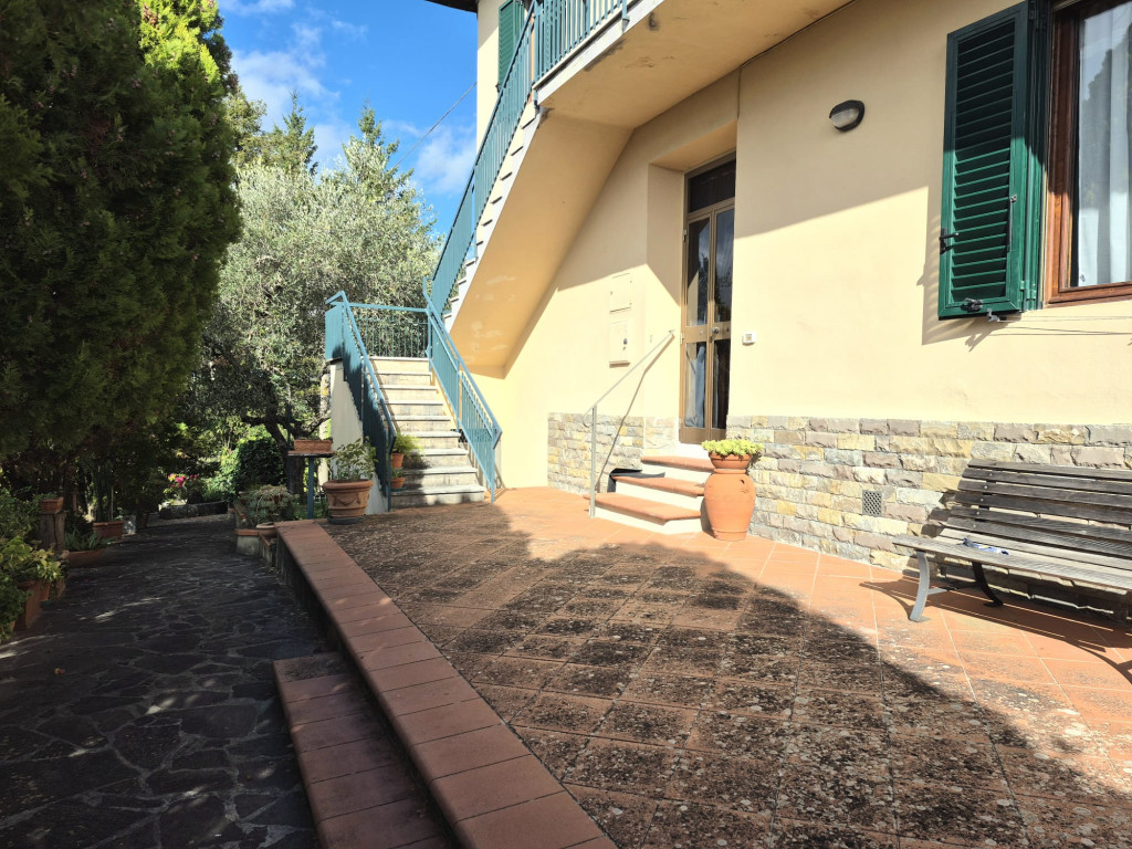 In posizione panoramica e all'ingresso del paese di Diacceto troviamo questa bellissima proprietà composta da una Villetta libera su quattro lati e divisa in due appartamenti indipendenti. Dal cancello pedonale si accede ad una grande resede lastricata ideale per cene o pranzi all'aperto nella più totale privacy e tranquillità e proseguendo al giardino esclusivo per un totale di circa 500mq. Al piano terreno troviamo il primo appartamento composto da un arioso ingresso, cucina abitabile con camino, soggiorno, due camere matrimoniali e servizio finestrato. Al primo piano, a cui si accede da scala esterna con un bel balcone da cui si gode un incantevole panorama, troviamo il secondo appartamento anch'esso con un ampio ingresso, cucina abitabile, soggiorno, due camere matrimoniali e servizio finestrato. Completa la proprietà il sottotetto e una cantina al piano seminterrato. Entrambe le unità hanno impianti indipendenti. E' presente gas metano e acquedotto di città. Tetto e facciate sono state rifatte di recente così come l'impianto elettrico dell'appartamento del primo piano. Sono state rifatte tutte le persiane in alluminio. Ideale per chi cerca una soluzione abitativa per famiglie numerose.