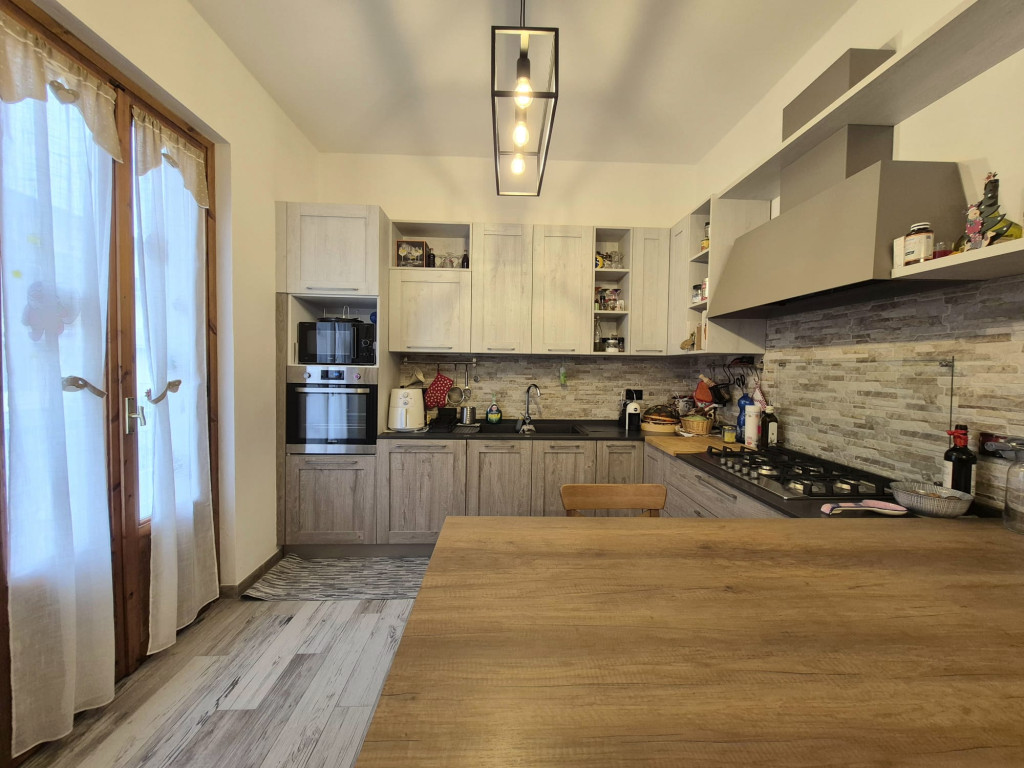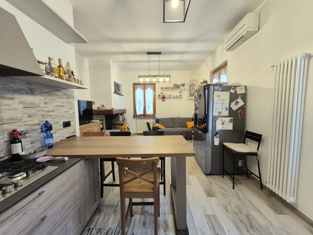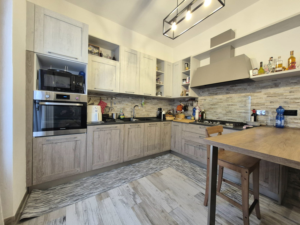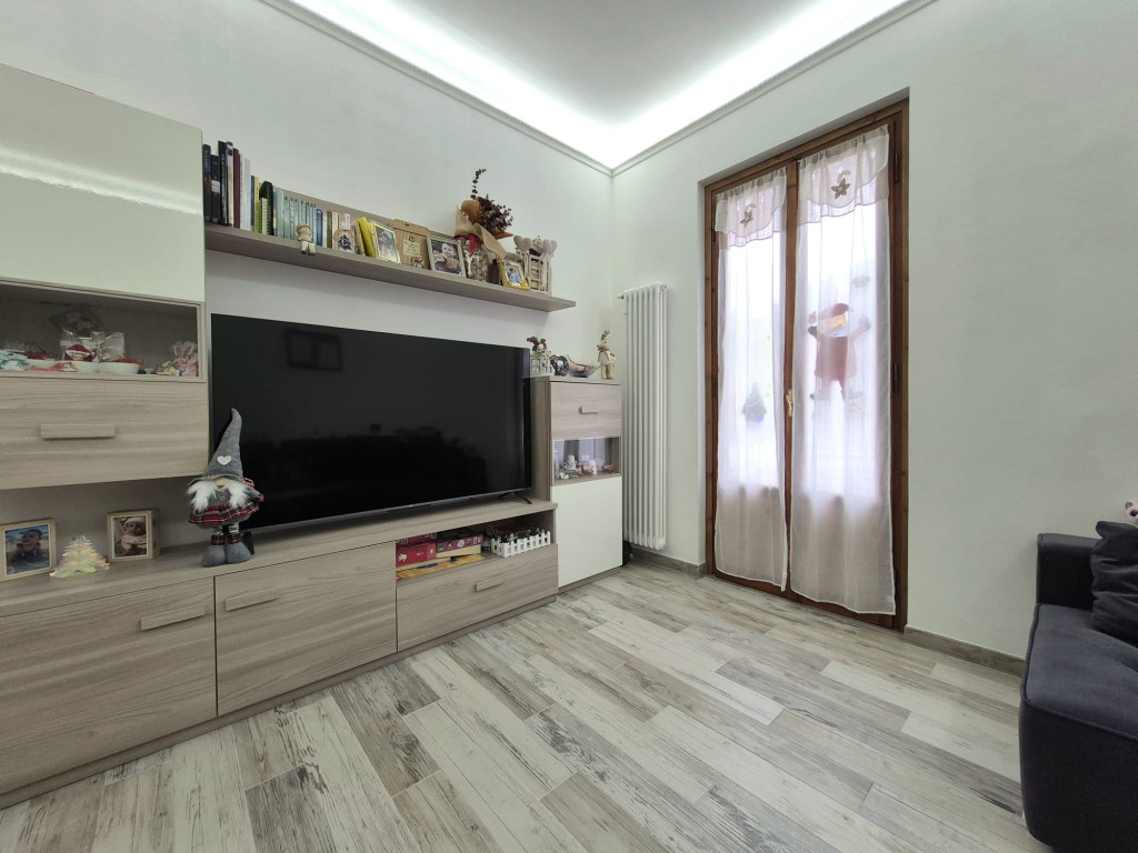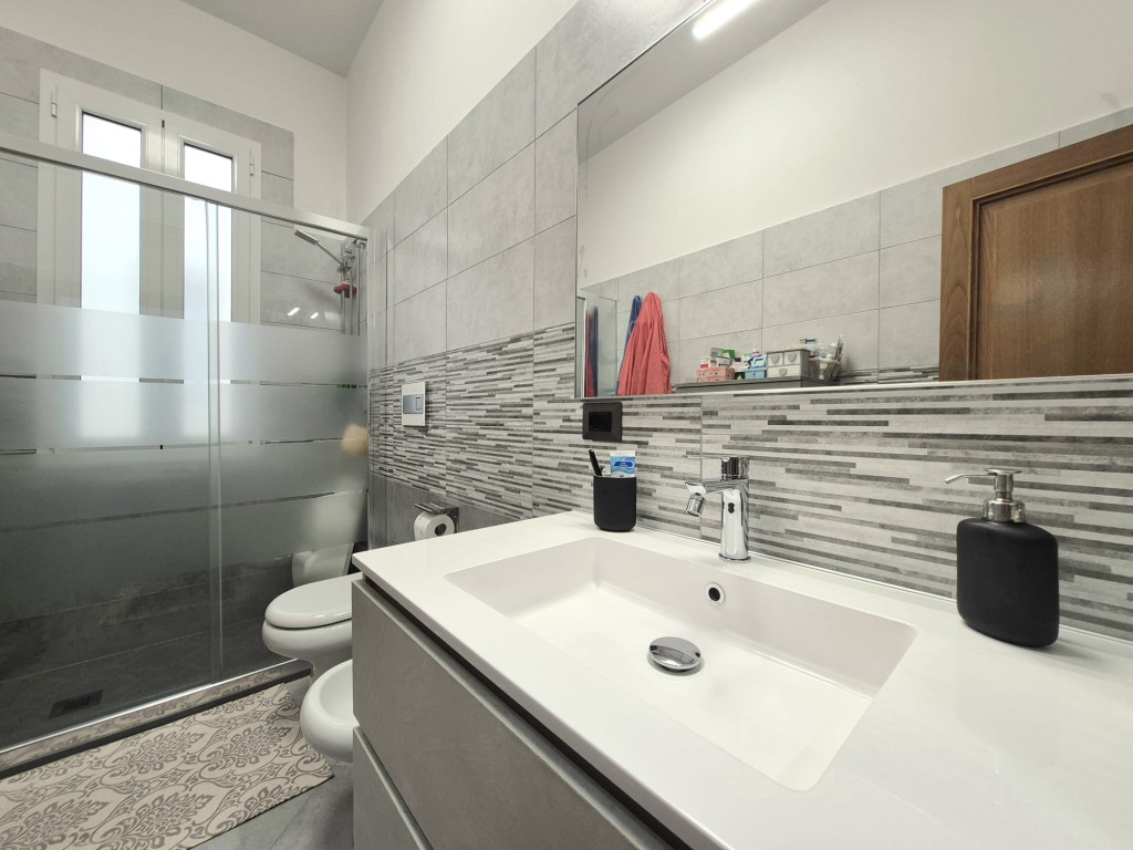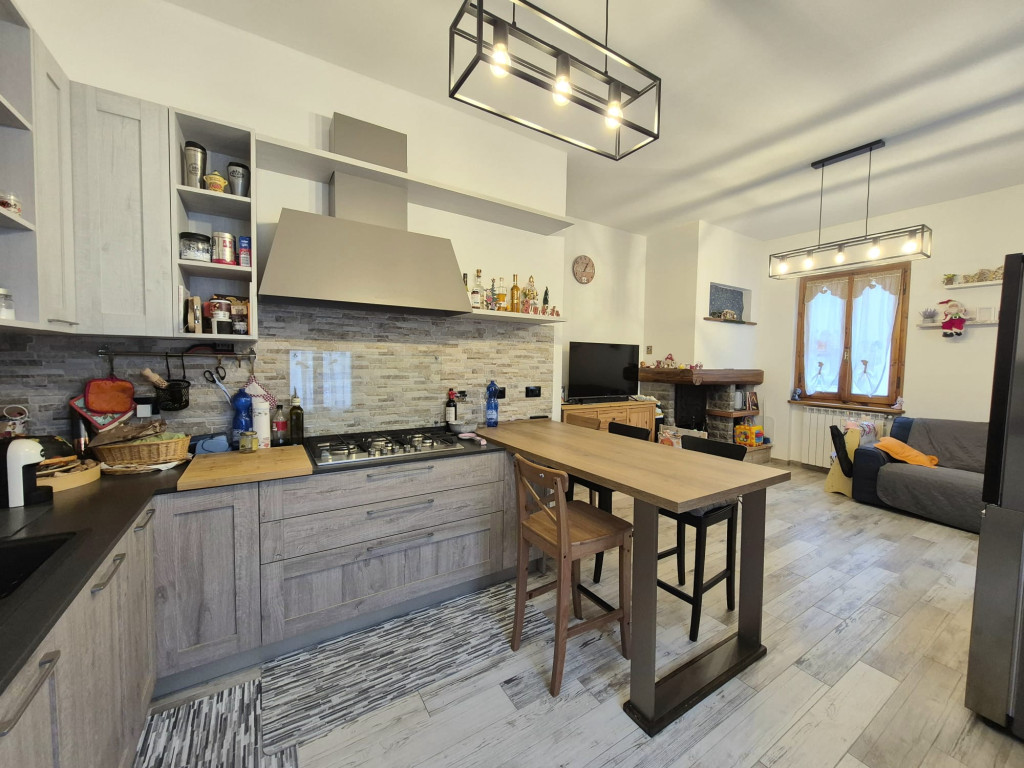 In zona residenziale vicino a tutti i servizi troviamo questo comodissimo appartamento posto al primo piano di villino bifamiliare. L'appartamento frutto di una recentissima ristrutturazione risulta essere pertanto in ottime condizioni. Al pian terreno, con ingresso indipendente, attraversando il giardinetto di proprietà si entra nell'androne scale esclusivo che conduce al primo e di ultimo piano. Ci accoglie un arioso ingresso che funge anche da disimpegno attraversando il quale raggiungiamo la zona cucina-pranzo openspace, ambiente molto confortevole in quanto ben illuminato e areato, dotato di termocamino e accesso al balcone che costeggia tutto un lato dell'appartamento. Il salotto anch'esso molto spazioso è dotato di portafinestra che conduce al balcone. Le due camere matrimoniali al piano sono entrambe molto ampie e accoglienti, il servizio principale è finestrato e dodato di doccia, mentre il secondo servizio non finestrato vista la metratura di oltre 9 mq è adatto ad essere utilizzato anche come lavanderia. Completa la proprietà la mansarda abitabile, sfruttabile sia come terza camera che come studio. La parte più bassa del sottotetto è stata sapientemente sfruttata come zona ripostiglio.