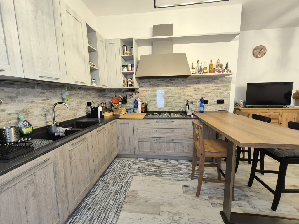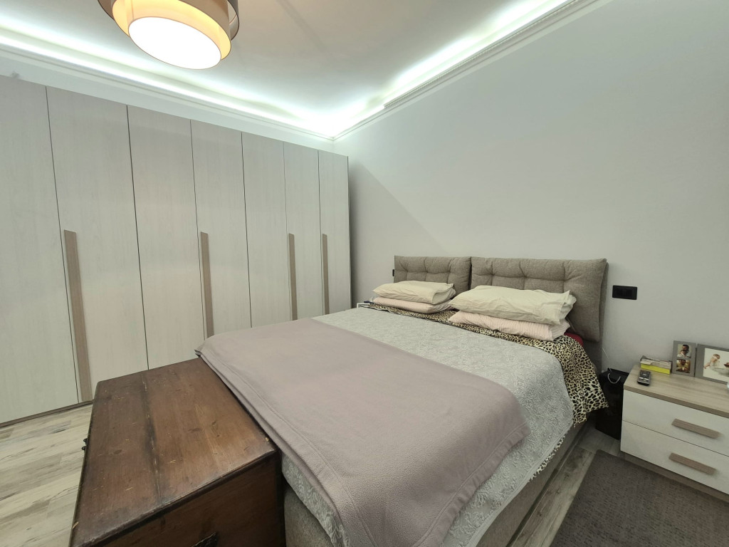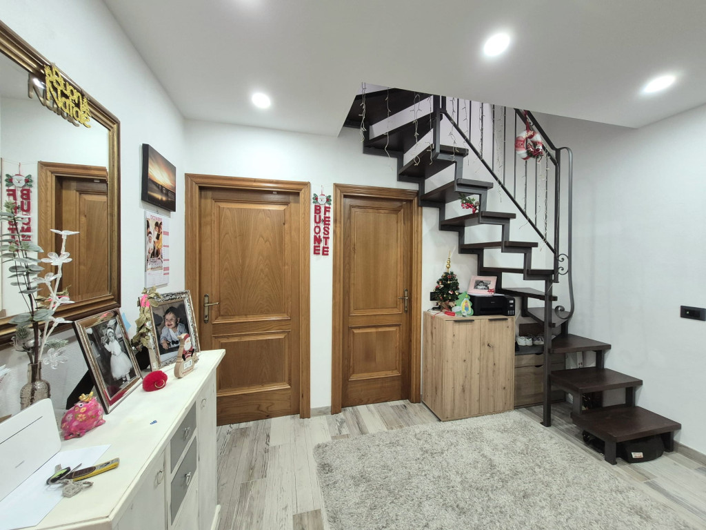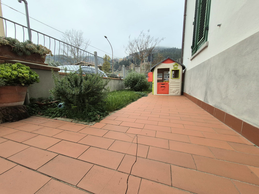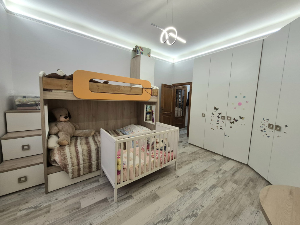 In zona residenziale vicino a tutti i servizi troviamo questo comodissimo appartamento posto al primo piano di villino bifamiliare. L'appartamento frutto di una recentissima ristrutturazione risulta essere pertanto in ottime condizioni. Al pian terreno, con ingresso indipendente, attraversando il giardinetto di proprietà si entra nell'androne scale esclusivo che conduce al primo e di ultimo piano. Ci accoglie un arioso ingresso che funge anche da disimpegno attraversando il quale raggiungiamo la zona cucina-pranzo openspace, ambiente molto confortevole in quanto ben illuminato e areato, dotato di termocamino e accesso al balcone che costeggia tutto un lato dell'appartamento. Il salotto anch'esso molto spazioso è dotato di portafinestra che conduce al balcone. Le due camere matrimoniali al piano sono entrambe molto ampie e accoglienti, il servizio principale è finestrato e dodato di doccia, mentre il secondo servizio non finestrato vista la metratura di oltre 9 mq è adatto ad essere utilizzato anche come lavanderia. Completa la proprietà la mansarda abitabile, sfruttabile sia come terza camera che come studio. La parte più bassa del sottotetto è stata sapientemente sfruttata come zona ripostiglio.