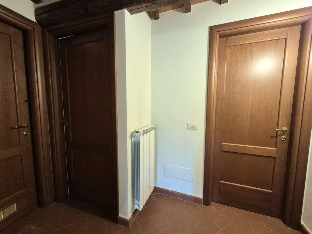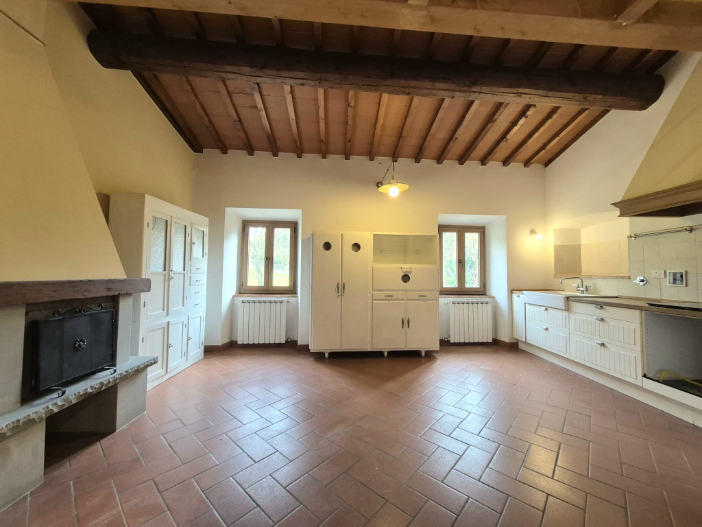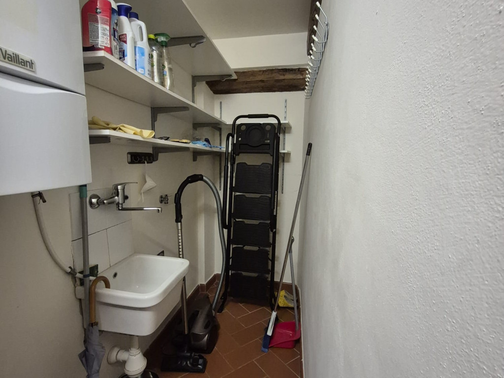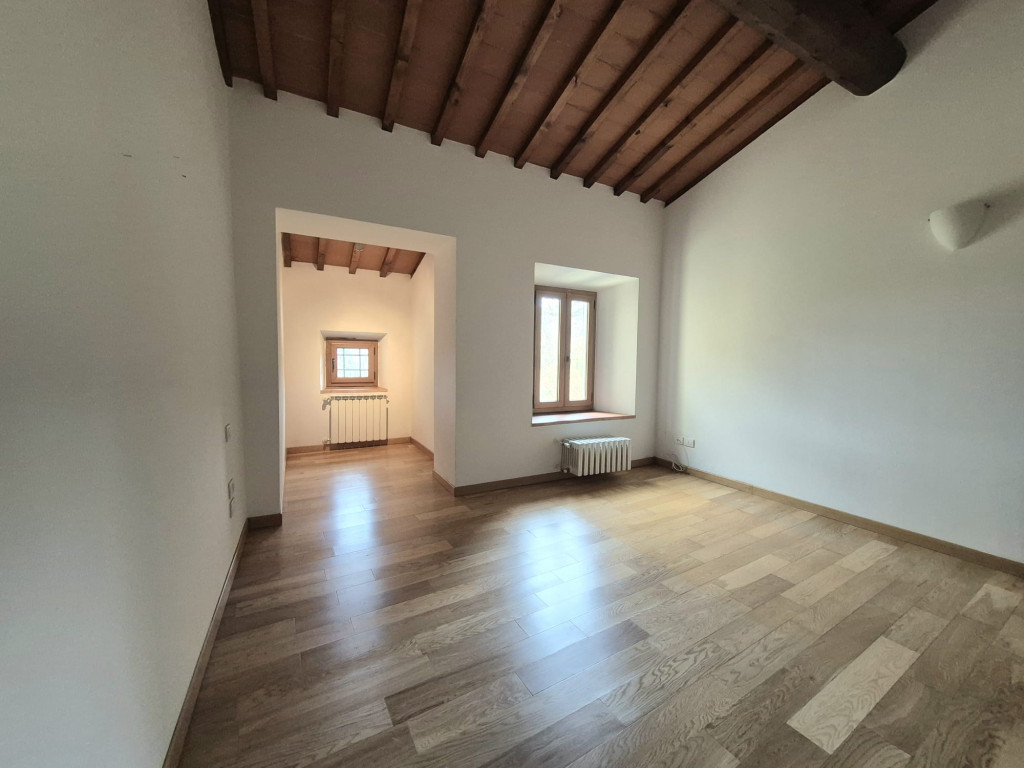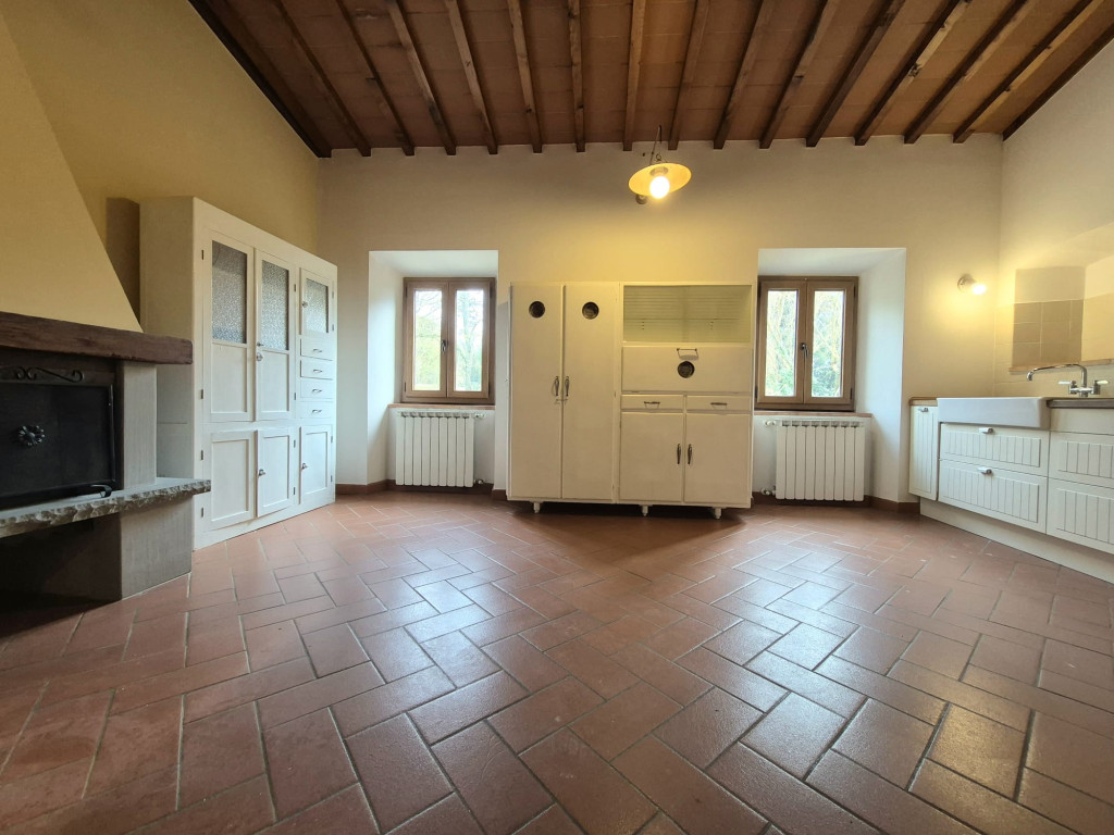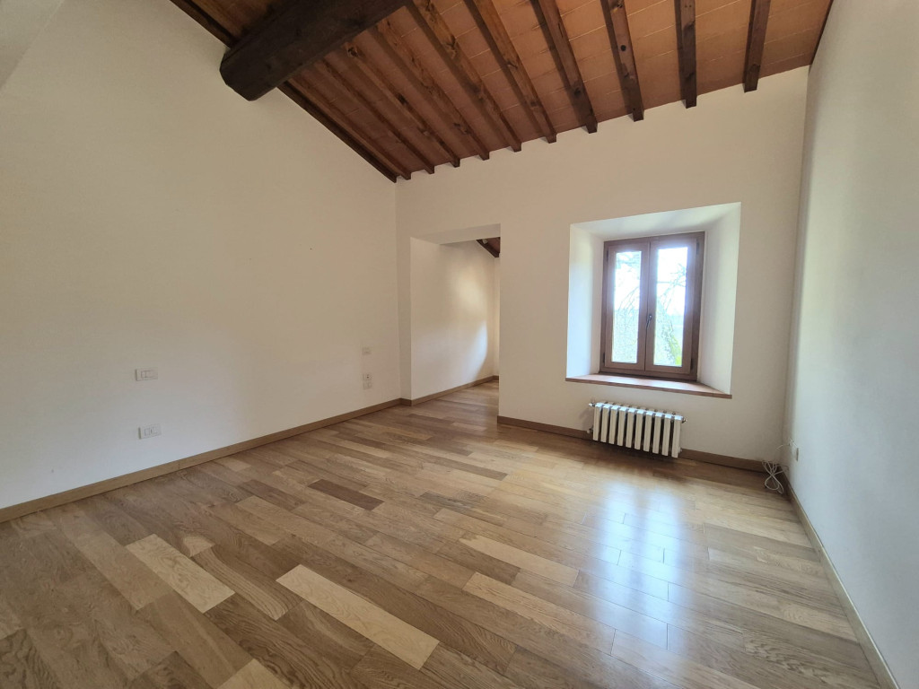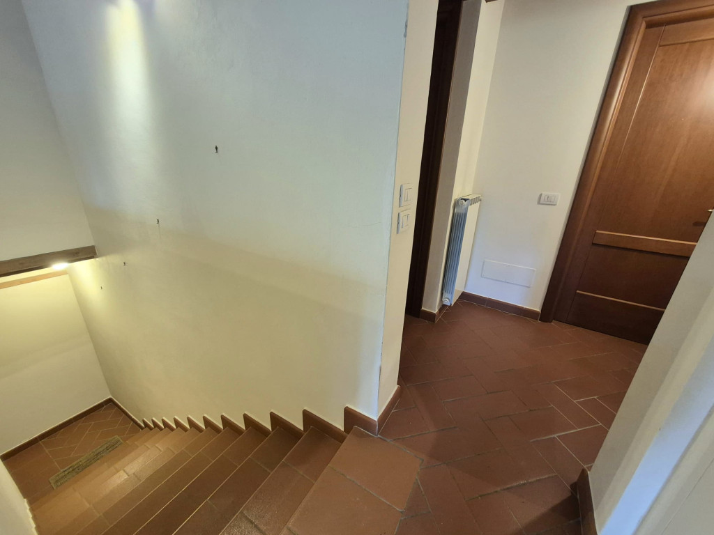 In contesto residenziale immerso nel verde troviamo questo delizioso appartamento posto al primo ed ultimo piano. L'accesso all'unità immobiliare avviene da un'ampia resede comune lastricata e tramite scala di proprietà si raggiunge il primo piano. L'appartamento è caratterizzato da una zona living openspace con cucina a vista e impreziosita da un funzionale caminetto e un ampio ripostiglio dispensa, dal disimpegno si giunge ad una camera matrimoniale ariosa e con affacci nel verde, al servizio dotato di vasca e alla seconda stanza in soppalco a sbalzo sulla zona giorno.