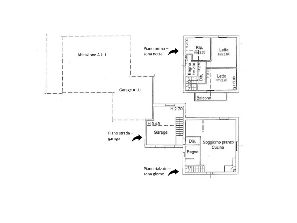La zona giorno si sviluppa al piano terra, con ambienti luminosi e accessibili, mentre la zona notte è collocata al piano superiore, dove si trovano tre camere da letto, di cui una con balcone e un bagno finestrato. Al piano terra è presente un secondo bagno, sempre finestrato, a servizio della zona giorno.