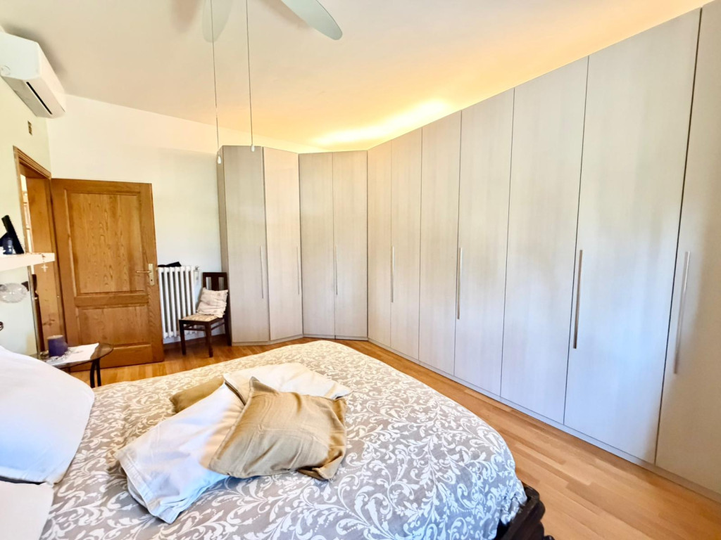 La zona giorno si apre su un ampio e accogliente soggiorno che funge da cuore pulsante della casa, separato con eleganza dalla sala da pranzo e da un funzionale cucinotto finestrato. La zona notte è studiata per garantire la massima privacy e comfort: comprende due grandi camere matrimoniali, di cui una dotata di servizio privato esclusivo, oltre a una terza camera ideale per un uso singolo o come studio professionale. Un secondo servizio igienico principale serve comodamente il resto della casa.